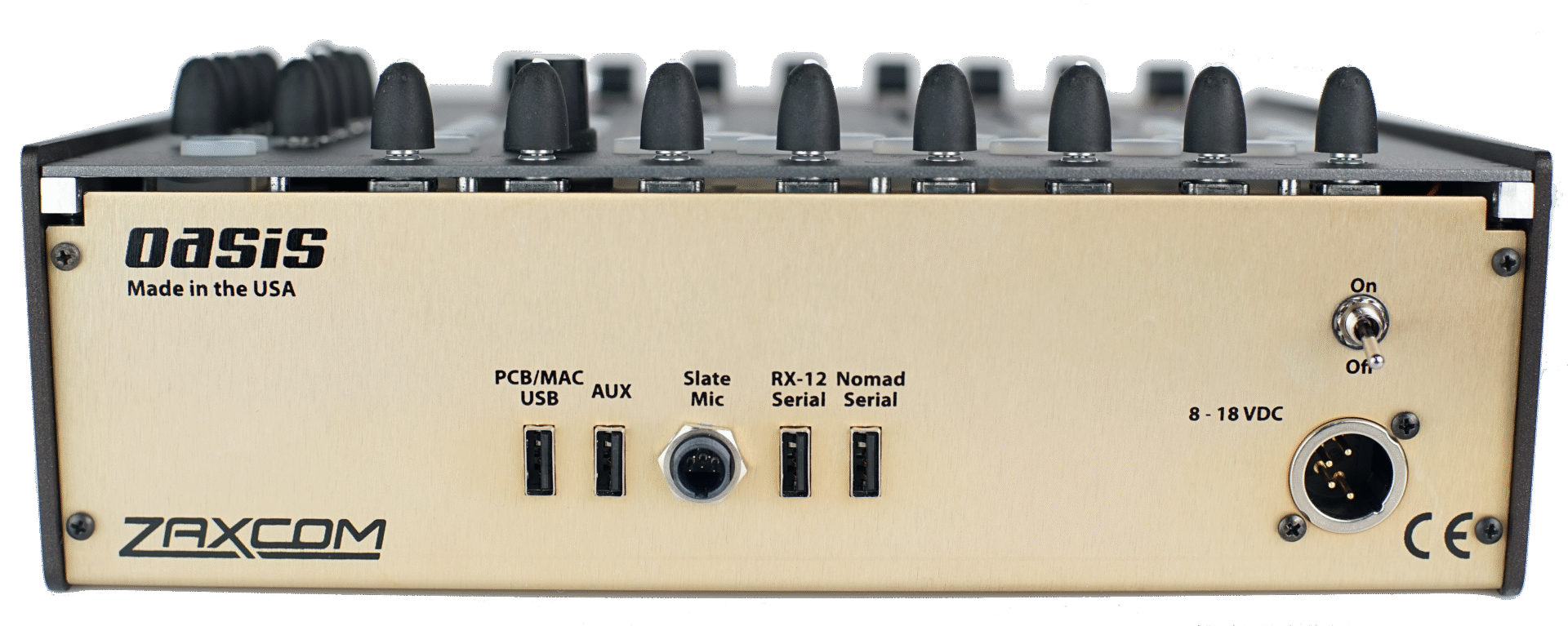The Oasis can control Nova 2, Nova, Nomad 12, Nomad 10, and Deva 24 via a single serial control cable, all the processing and recording stay within the host recorder. This turns the recorder into a no-compromise cart-based mixing and recording system that can quickly and seamlessly transition from a cart to a bag by unplugging just one cable.