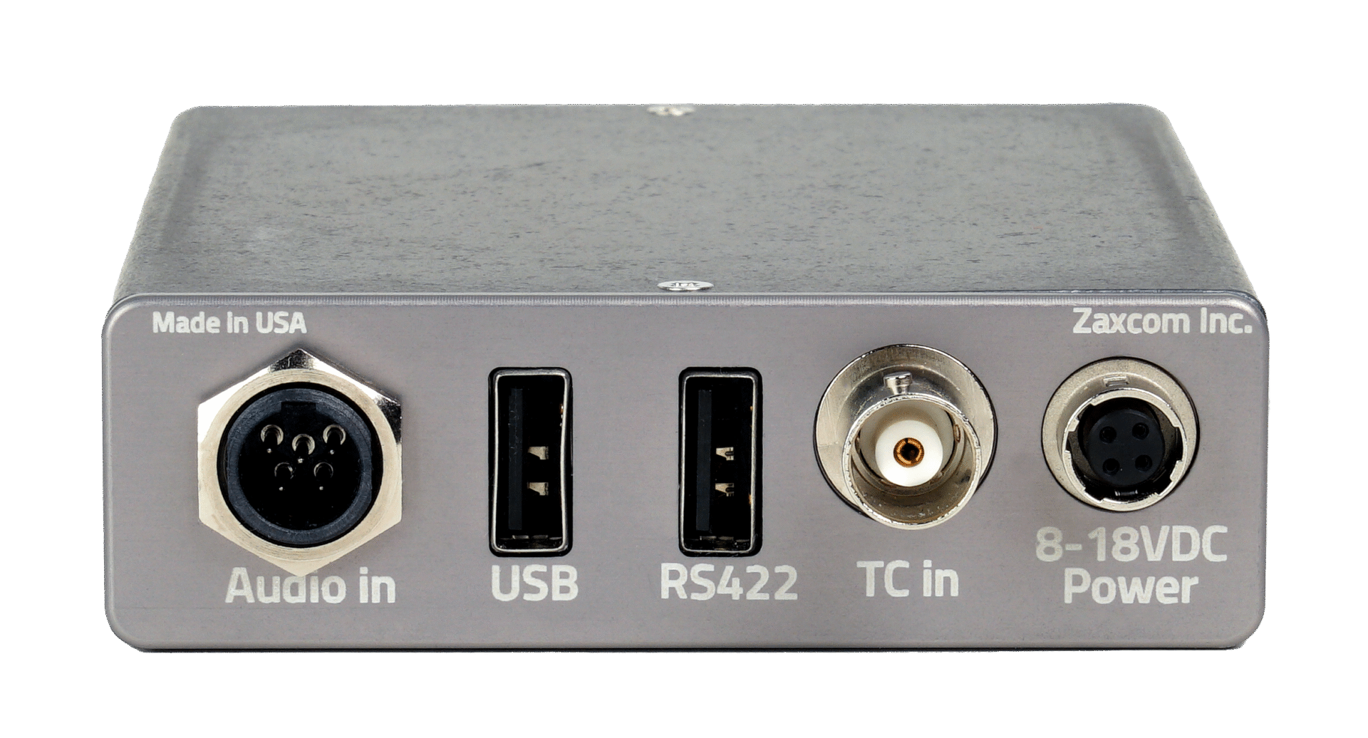 A TA5 audio input offers a balanced stereo line level or sample rate conversion AES. The BNC connector provides a timecode input while the USB input allows for software updates.