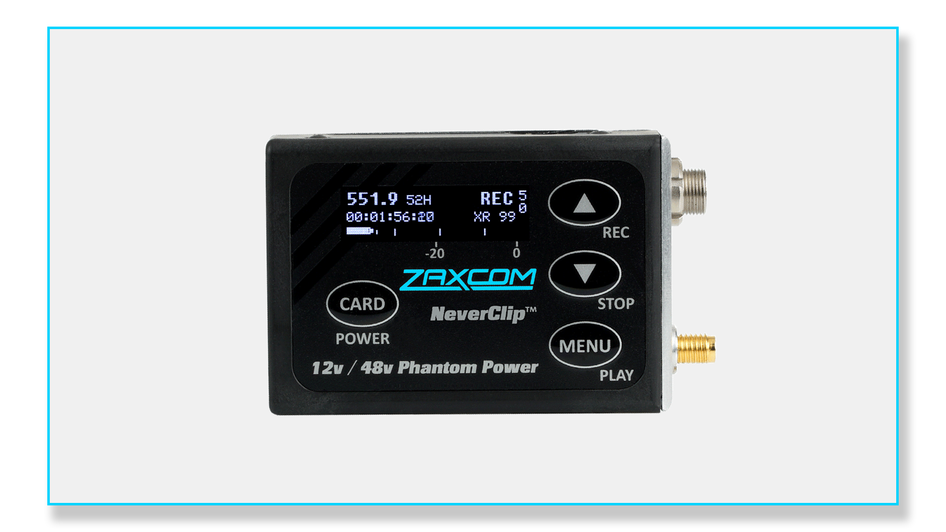 ZMT4 is equipped with ZaxNet™, a long-range remote-control system allowing the user to change the frequency, pre-amp gain, sleep mode, and place the internal recorder in record, playback, and stop modes – all without ever needing to disturb talent